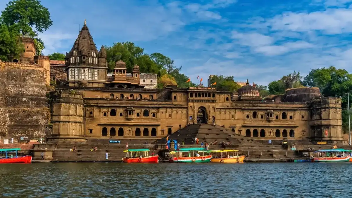 An island temple on the Narmada River, perfect for peaceful darshan and divine energy.